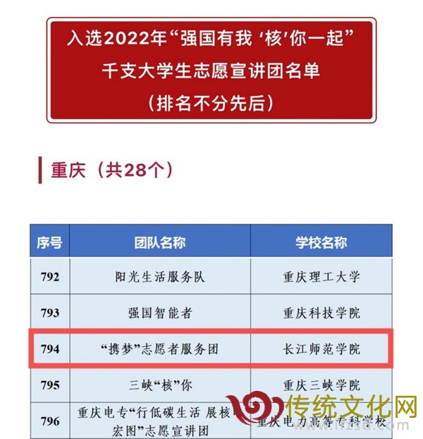 长江师范学院“携梦”志愿者服务团入选2022年“强国有我‘核’你