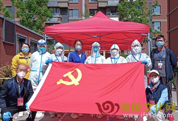 贾秀云在中博品晟雅苑检测点与党员、志愿者合影