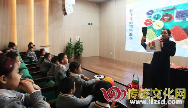 山东省博物馆的老师们带着学生了解了传统文化的众多形式。同学们回味起放鞭炮、吃年夜饭、贴春联,送福字等浓浓的年味儿。在喜悦的中走进“年画”看彩图,品习俗,悟风采。