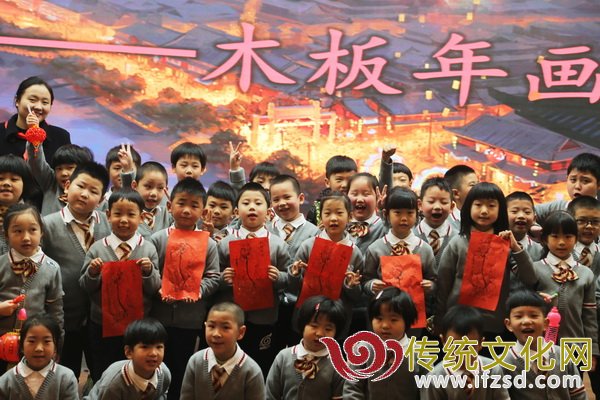 2月13日上午,开学第一天,山东省实验小学一年级学生们开起了自己探究优秀传统文化的开学第一课:《品传统民俗——木板年画》。