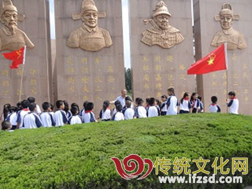 首先是西北角的儒家文化广场。在这里,队员们饶有兴趣地重温了论语的经典句段,有的同学甚至大声朗读了起来。在这里,队员们还认识了汶上自古有着“小县不大四尚书”美谈的汶上四尚书。