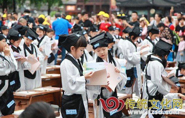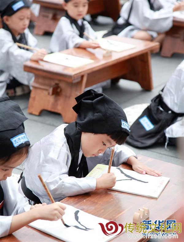 8月31日,南京夫子庙小学一年级新生在夫子庙广场参加“开笔礼”。当日,南京夫子庙小学的一年级新生来到夫子庙参加“开笔礼”,在传统的开笔破蒙仪式中正式入学。
