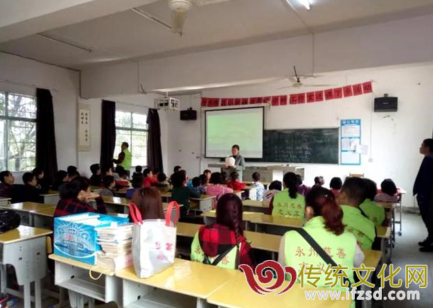 11月4日,湖南省永州市财政局、市工商联爱心人士与市慈善志愿者来到冷水滩区上岭桥镇的“暖阳学校”,陪伴37名“暖阳学生”开展“学习传统文化 培养优良品德”慈善公益活动。