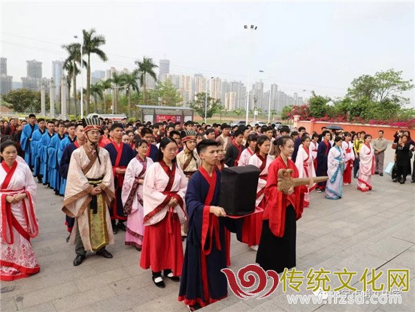 习近平总书记在十九大报告指出,坚定文化自信,推动社会主义文化繁荣兴盛。2018年4月12日,邕江畔孔圣庙中,南宁市第九中学高三年级传统汉服成人仪式隆重举行,以实际行动传承中华优秀传统文化。蒋应辉校长、周秀中书记、韦苏副校长、雷清副校长、周敏副校长及部分中层以上领导,高三年级全体师生以及学生家长着传统汉服参加了此次活动。