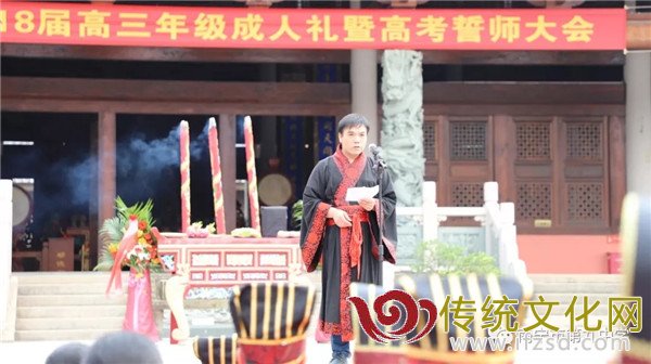 活动遵照中国传统成人仪式的流程进行。早晨9:30,成人仪式正式开始。肃静端立,昭告昊天,让苍天见证当代青年成人成才的恒心;高举冠笄,穿过星门,让棂星庇护当代青年人誓做栋梁的决心;净手入庙,礼拜孔圣,让万世先师祝福当代青年人学有所成,聪慧过人:蒋应辉校长、周秀中书记、倪军年级组长赍捧高香,学生代表敬奉花篮、水果敬献孔圣,全体师生礼拜孔老夫子。教导学生尊师重道是为人,成人才能成才。“百善孝为先”,冠笄礼环节,十组家庭为大家展现了传统成人仪式的三加礼,明晓了成人后对家庭、对社会、对国家的责任。全体家长也在“父母聆讯”环节,对于十八而志的孩子给予了厚望。