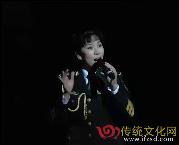 这是一个撼人心魄的场景:伴随着优美动听的旋律,一身军装的殷丛丛款款步入舞台,她以亲切感人的形象,真挚朴实的情感,饱满浑厚的女中音,开始了《兰花》的演唱。一曲终了,余音缭绕,令我回味无穷。在第一部分,她以旋律变化再现的演唱方法,实现了对音乐主题的升华,完美地表现出了深切盼望之情;第二部分在高音区则以满怀激情、奋发向上的音韵,发出“啊,兰花白兰花,月光下……”的激越旋律,使全曲演唱达到了高潮。在两岸人民为实现民族团结统一的神圣大业,而共同期盼的殷切呼唤中,接着变化再现了第一部分的音乐主题,可谓神来之语配上传神之音。以物寄怀、以声托情,兰花的色、香、情、态,在丛丛老师优美音韵中散发出清新馨香,使人联想起革命前辈董必武对兰花“气清、色清、神清、韵清”的赞许。