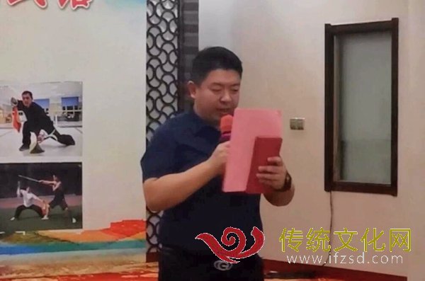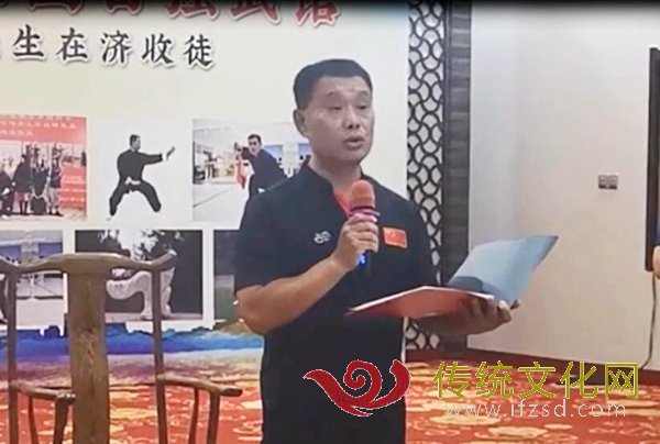 济南市历城区文艺界联合会主席赵景伟先生在致辞中表示,因为我和几位先生结缘是我在2020年履职文联之后,有一个非常关键的一个活动,也就是说是华山论剑。我虽然是从事这个文联工作,但是从小非常喜欢这个武术,这个李玉海先生。给他也是多年,虽然没能出个什么道道来,但是从小确确实实非常喜欢这个武术活动,那么来到文联之后,从刚才秘书长开场的时候,就能听出来带着浓浓的一种文化的气息。对于这个古典的东西呀,历史的延续呀,也就是古的,带着这是文化的这个状态。现在呢我和继伟先生呢也正在探讨武术和文化,就是说注册一个与文化偏向于武术的一个协会,现在我们正在运作。