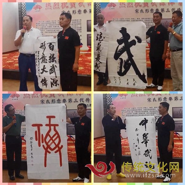 济南市历城区政协张红心先生、著名书法家朱训奇先生、著名书法家王鹤捷先生、著名书法家温杰先生分别赠送了墨宝,并对武源体育荣获全国百强武馆暨孙继伟收徒仪式表示祝贺!