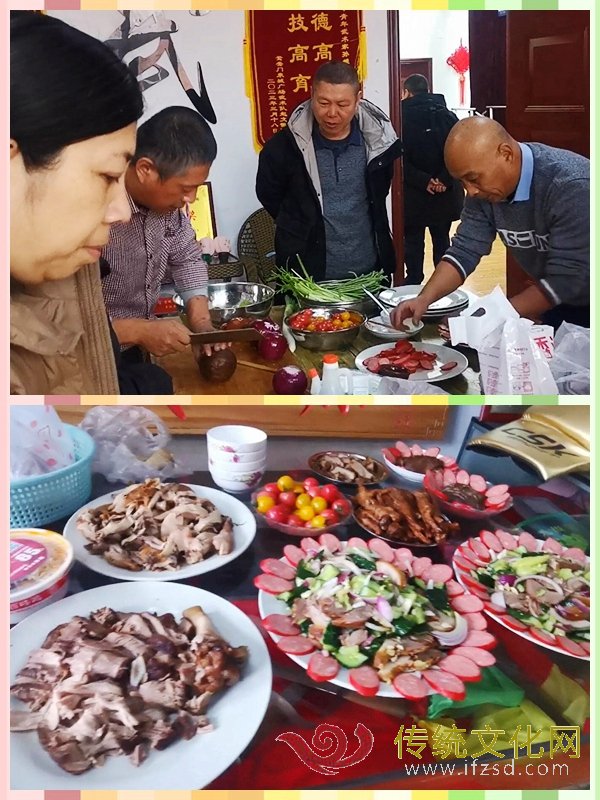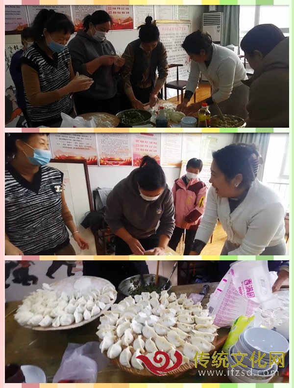 在孩子们演练的同时,隔壁的办公室里,孩子们的爸爸妈妈也在热火朝天的气氛中,择菜、洗菜、切菜,拌馅、和面、擀皮、包水饺。边做边聊,好不热闹!凉拌豆角、姜汁松花、拌猪头肉、炖羊排、烧鸡。。。。一盘盘的精美菜肴象花儿一样盛开;