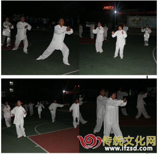 学校太极爱好者集体表演42式太极拳,赢得全体师生阵阵掌声。