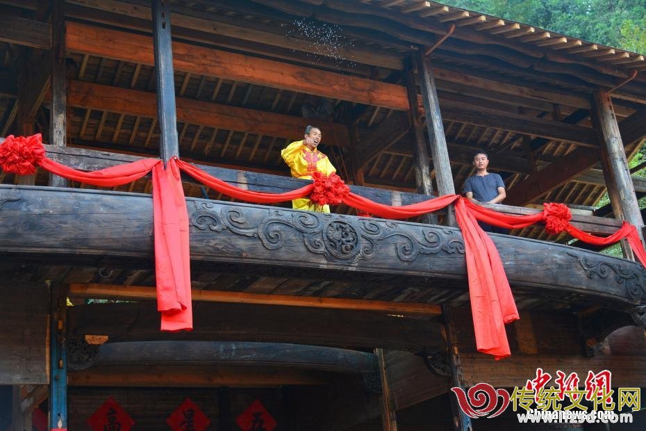 江西婺源村民“上梁叫彩” 再现徽州古民俗