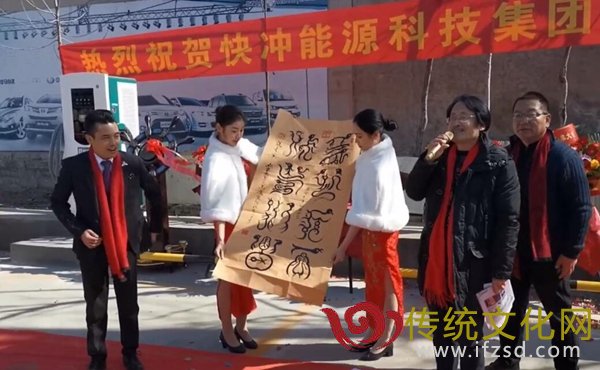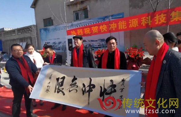 山东省文化促进会理事长王占湖;扛旗世界之最、鸟虫篆、马鹰篆第六代传人、现任山东联合大学客座教授、中国孔子书画家协会副主席李森;中国国画艺术研究院山东院副院长、中国孔子书画家协会常务副主席黄星华;山东万世集团董事长、山东万辉新能源(电子)科技有限公司董事长朱本申;济南义和轩书画院院长刘治山;快冲能源科技集团公司顾问王萌杰;新加坡甲骨文研究院院长乔雪;迎顺集团副总裁、快冲能源科技集团董事会董事段继丰;快冲能源科技集团公司总经理王福强;山东泉鑫斋文化传承有限公司董事长钟心亮;海林书画研究院院长刘世和;酒事茶说(山东)商贸有限公司董事长、杜康酒业产业集团公司监事长黄丽华;快冲能源科技集团公司项目部部长宋建国、副部长盛国松以及市场部部长高强;快冲能源科技集团公司董事长王震等领导和嘉宾出席开业仪式,快冲能源科技集团董事长王震、扛旗世界之最、鸟虫篆马鹰篆第六代传人、山东联合大学客座教授、中国孔子书画家协会副主席李森分别致辞,活动由于祥楠、庞云主持。