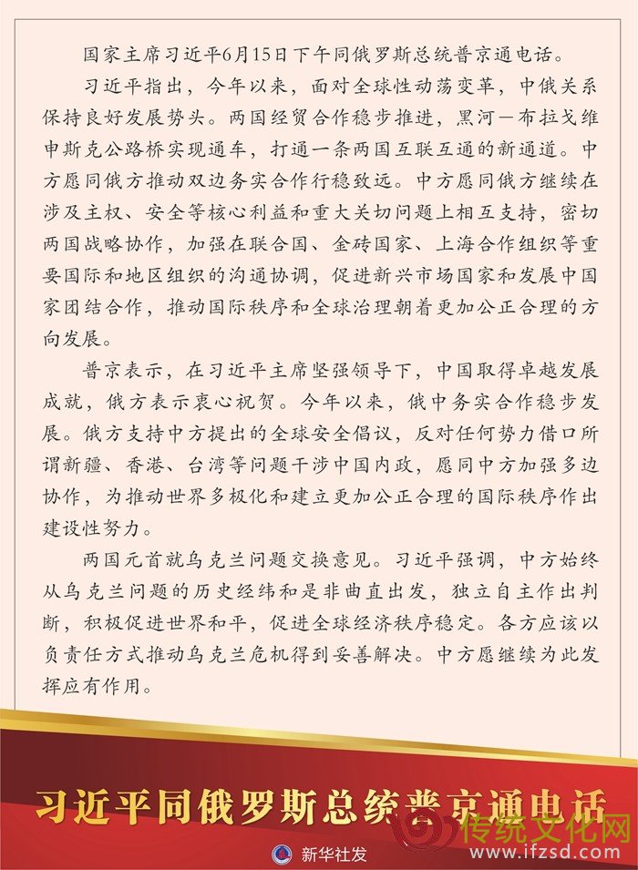 新华社北京6月15日电国家主席习近平6月15日下午同俄罗斯总统普京通电话。