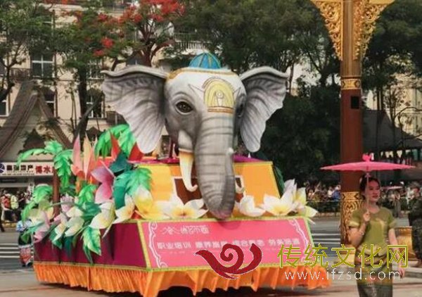 4月14日上午,西双版纳傣历1385年新年节民族民间传统文化大游演暨“澜·湄龙舟”展演在景洪城区举行。